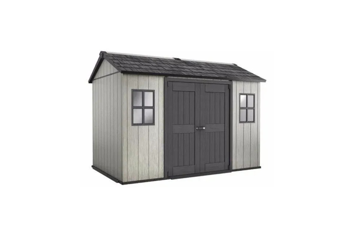 Садовий будиночок Keter Oakland 1 175 SD 350 х 229 см — це просторий та міцний садовий будиночок, який без проблем вмістить габаритну садову техніку, інструменти, меблі чи навіть квадроцикл. Він поєднує сучасний дизайн із високою функціональністю, а завдяки інноваційним стінам DUOTECH виглядає як дерев’яний, проте має всі переваги довговічної смоли.
