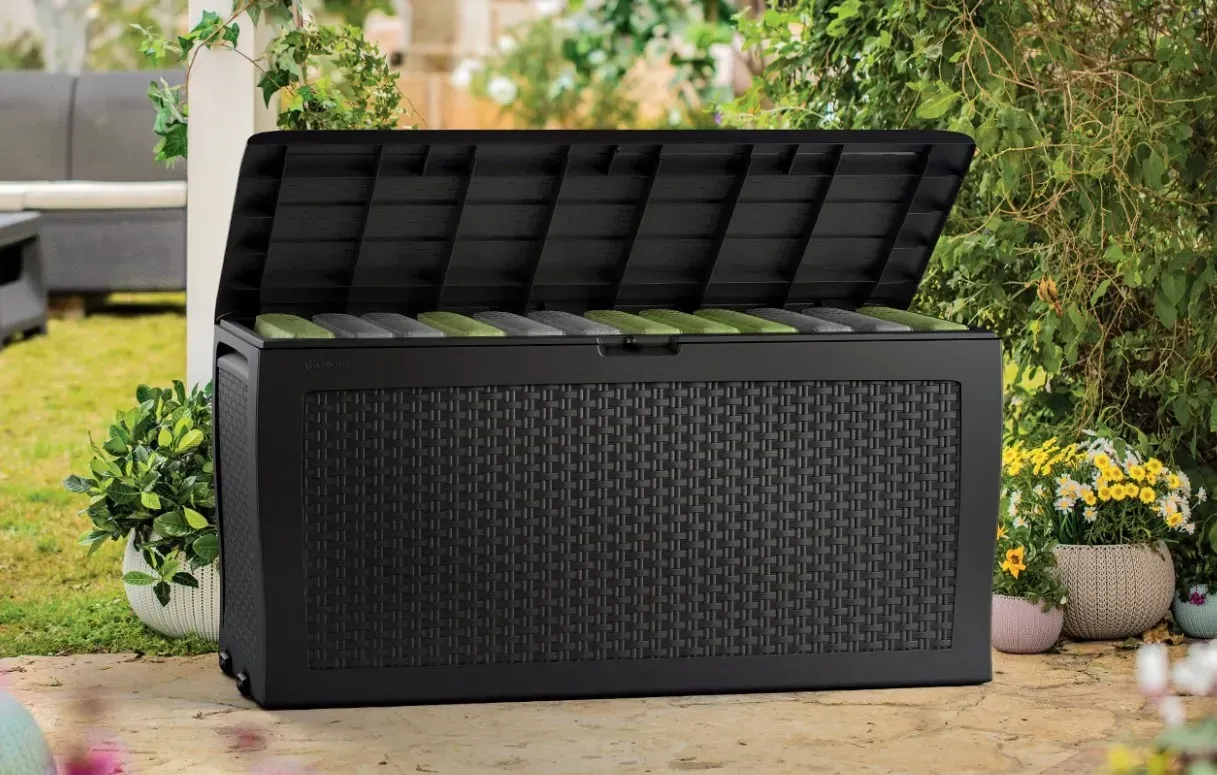 Вуличний ящик для зберігання Keter Samoa — це стильна та практична скриня для зберігання садового інвентарю, подушок, іграшок чи інших речей. Виконана з пластику з фактурою під деревину, вона гармонійно доповнить садові меблі та стане зручним рішенням для організації простору.