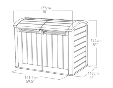 Ящик для зовнішнього зберігання Keter Store-It-Out Ultra, 2000 л — це місткий садовий комод, який забезпечує надійне зберігання садового інвентарю, меблів, велосипедів та іншого обладнання. Завдяки відкидній кришці та двостулковим дверям доступ до внутрішнього простору максимально зручний. Конструкція виготовлена з високоякісного пластику, стійкого до атмосферних впливів, що гарантує сухість і захист вмісту від вологи та бруду.