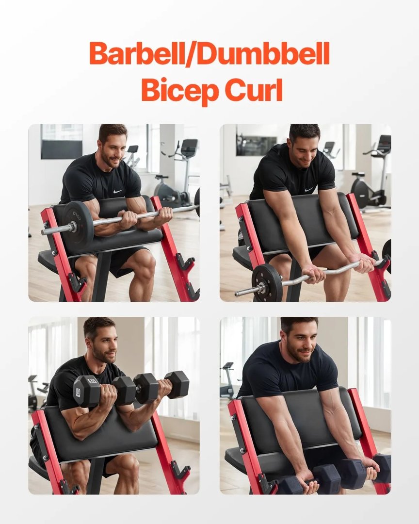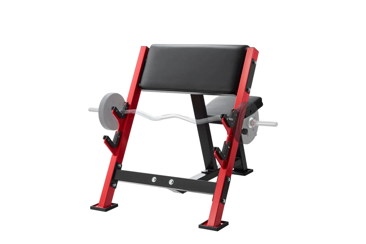 - Ця лава для вправ з молитовником, оснащена міцними тримачами для штанги і вантажопідйомністю 660 фунтів (300 кг), призначена для підйому великих ваг.