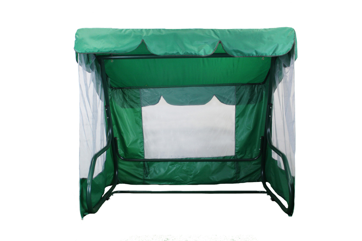 Тент з москітною сіткою Greengard для садової гойдалки Мальта, Таїті виготовлений зі спеціальної водовідштовхувальної тканини «Оксфорд» та забезпечує захист від палючого сонця і дощу під час відпочинку на свіжому повітрі. Москітна сітка не відстібається від тенту та повністю оточує каркас гойдалки, створюючи комфортні умови без докучливих комах. Зелений колір гармонійно поєднується з садовими меблями, додаючи акуратного вигляду.