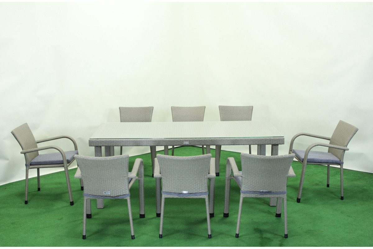 Комплект садових меблів Greengard Вермонт 220— елегантне та практичне рішення для облаштування зони відпочинку. Сучасний дизайн поєднує комфорт і функціональність, створюючи затишну атмосферу для сімейних обідів чи зустрічей на терасі, в альтанці або саду. Міцний металевий каркас із полімерним покриттям забезпечує надійність конструкції, а плетіння зі штучного ротанга вирізняється стійкістю до зовнішніх впливів та легкістю у догляді. Скляна стільниця додає комплекту витонченості та сучасного вигляду.