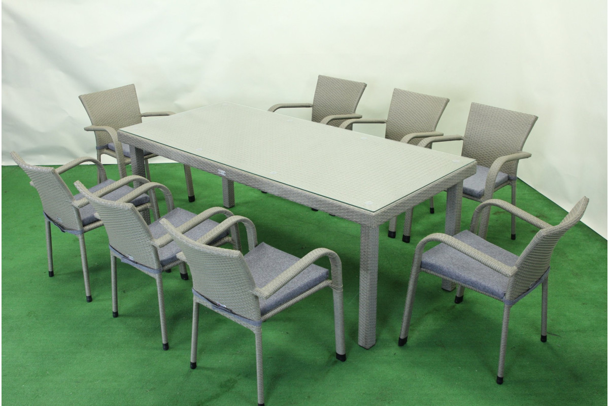 Комплект садових меблів Greengard Вермонт 200— елегантне та практичне рішення для облаштування зони відпочинку. Сучасний дизайн поєднує комфорт і функціональність, створюючи затишну атмосферу для сімейних обідів чи зустрічей на терасі, в альтанці або саду. Міцний металевий каркас із полімерним покриттям забезпечує надійність конструкції, а плетіння зі штучного ротанга вирізняється стійкістю до зовнішніх впливів та легкістю у догляді. Скляна стільниця додає комплекту витонченості та сучасного вигляду.