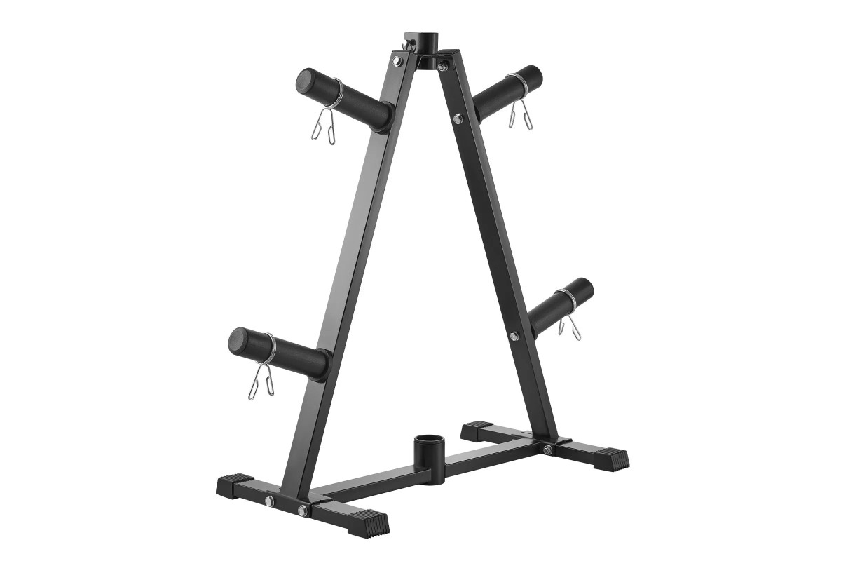 - Міцна конструкція стійки для тарілок витримує до 136 кг, забезпечуючи надійну основу для вправ, не турбуючись про безпеку під час зберігання кількох важких тарілок.