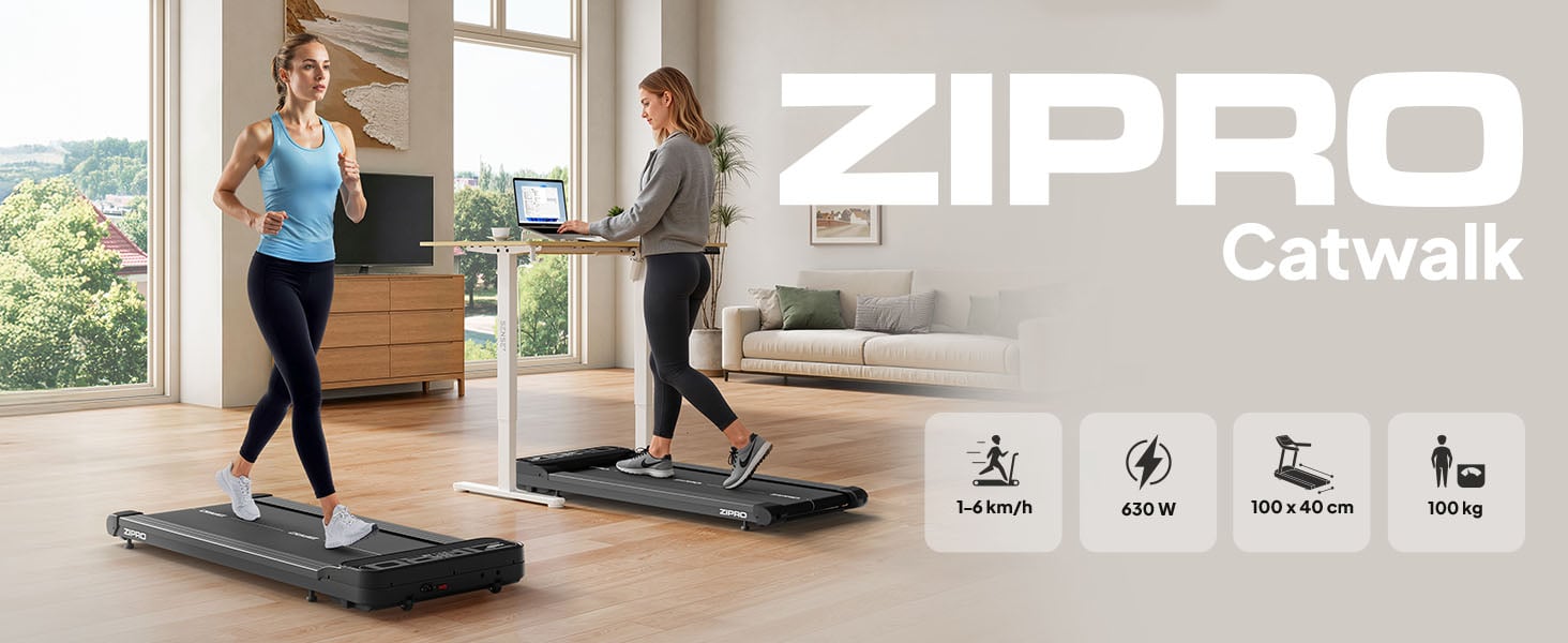 ZIPRO Catwalk дозволяє поєднувати рух із повсякденними справами. Щоденні кроки можуть значно поліпшити фізичну форму та фігуру. ZIPRO Catwalk — це компактна бігова доріжка для ходьби, яку можна використовувати під робочим столом під час роботи, перегляду телевізора чи прослуховування подкастів. Завдяки цьому щоденна активність стає легкою та приємною.