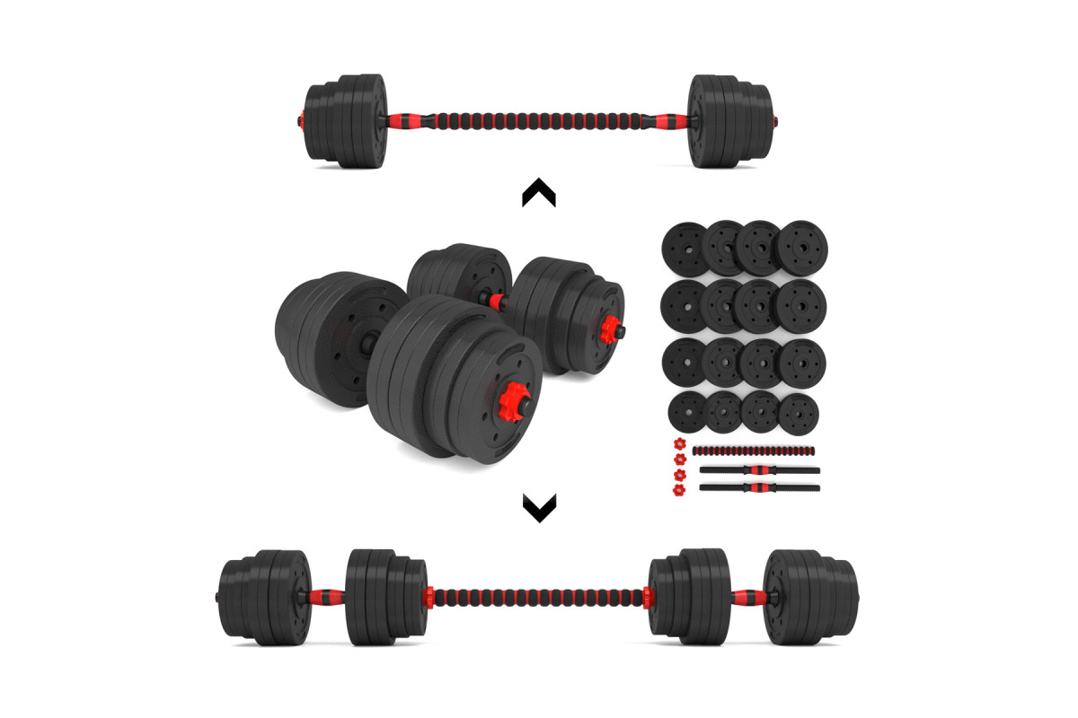 Набір штанга+гантелі HMS SGP40 — це класичні гантелі зі змінними обтяженнями, які є базовим елементом будь‑якого домашнього тренажерного простору. У комплект входять дві композитні гантелі, які можна з’єднати між собою за допомогою спеціального подовжувача, перетворюючи їх на повноцінну штангу. Таке рішення значно розширює можливості тренувань і дозволяє виконувати вправи, які неможливо або незручно робити з окремими гантелями.