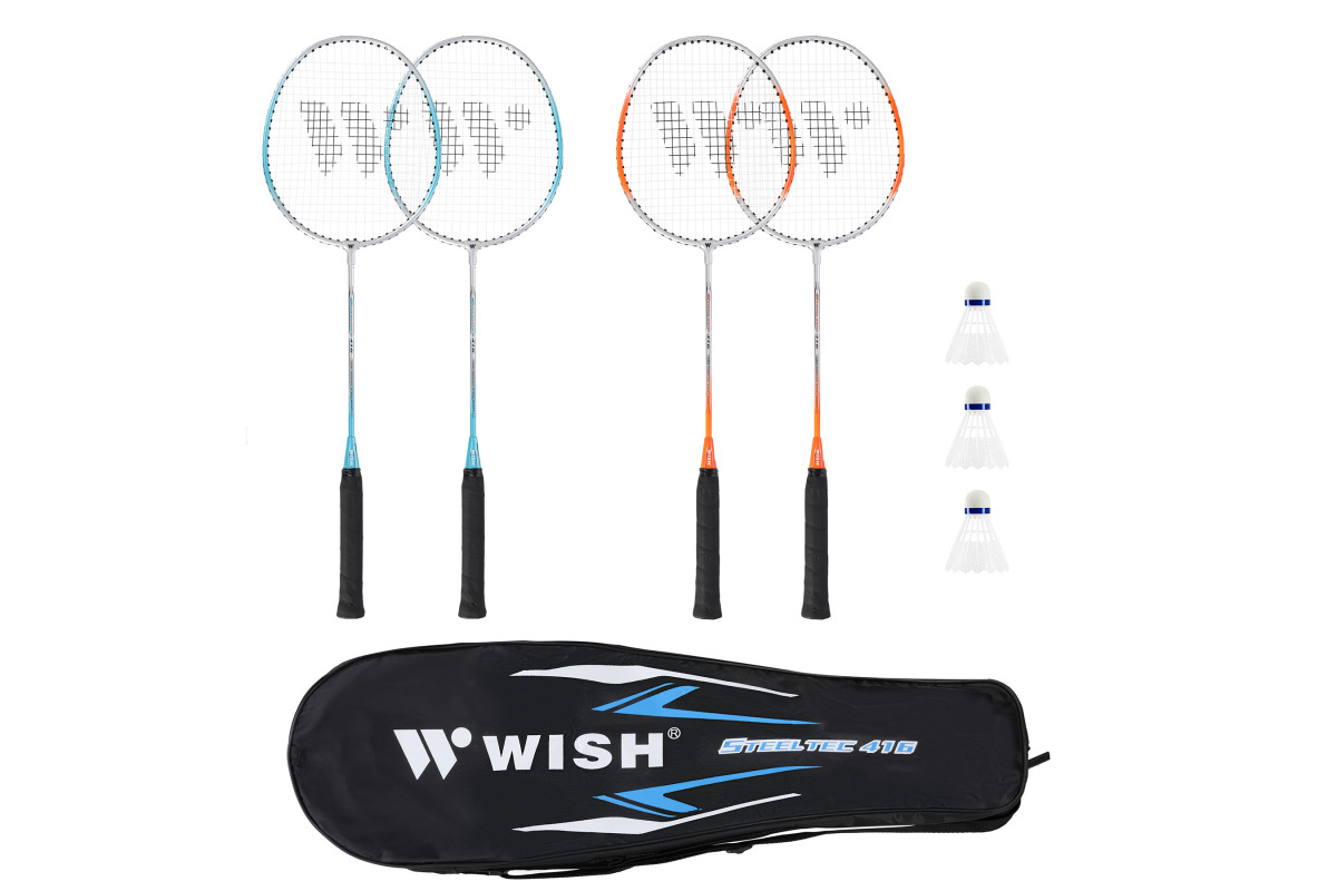 Набір ракеток для бадмінтону Steeltec 416K WISH призначений для гравців-початківців. Сталева конструкція значно покращує стабільність і міцність ракетки, що дозволяє краще контролювати удари. Композиція використаних матеріалів також впливає на легкість та гнучкість ракетки, що безпосередньо впливає на якість та комфорт гри. Винятково струнка форма ракеток Steeltec 416K дозволяє зменшити опір повітря, а отже, підвищується загальна потужність та ефективність гри.