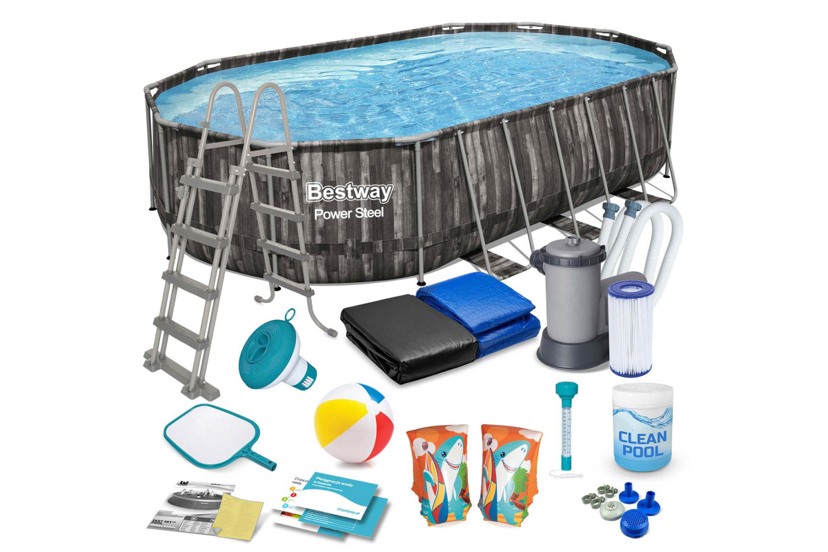 Комплект містить усе необхідне для підтримання кришталево чистої води: фільтр-насос, покращений фільтр, мультитаблетки для дезінфекції, дозатор хімії, термометр та сітку для збору сміття.