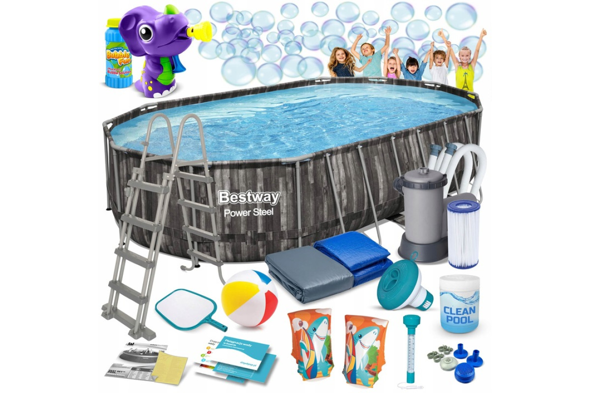 Басейн каркасний 18в1 Bestway 5611R 610 × 366 × 122 см — це ідеальне рішення для сімейного відпочинку у саду. Простора чаша дозволяє вільно плавати, а міцна конструкція та повний набір аксесуарів роблять його готовим до використання одразу після встановлення. У комплекті додається безкоштовний набір для виготовлення бульбашок (іграшка та рідина), що стане додатковою розвагою для дітей.
