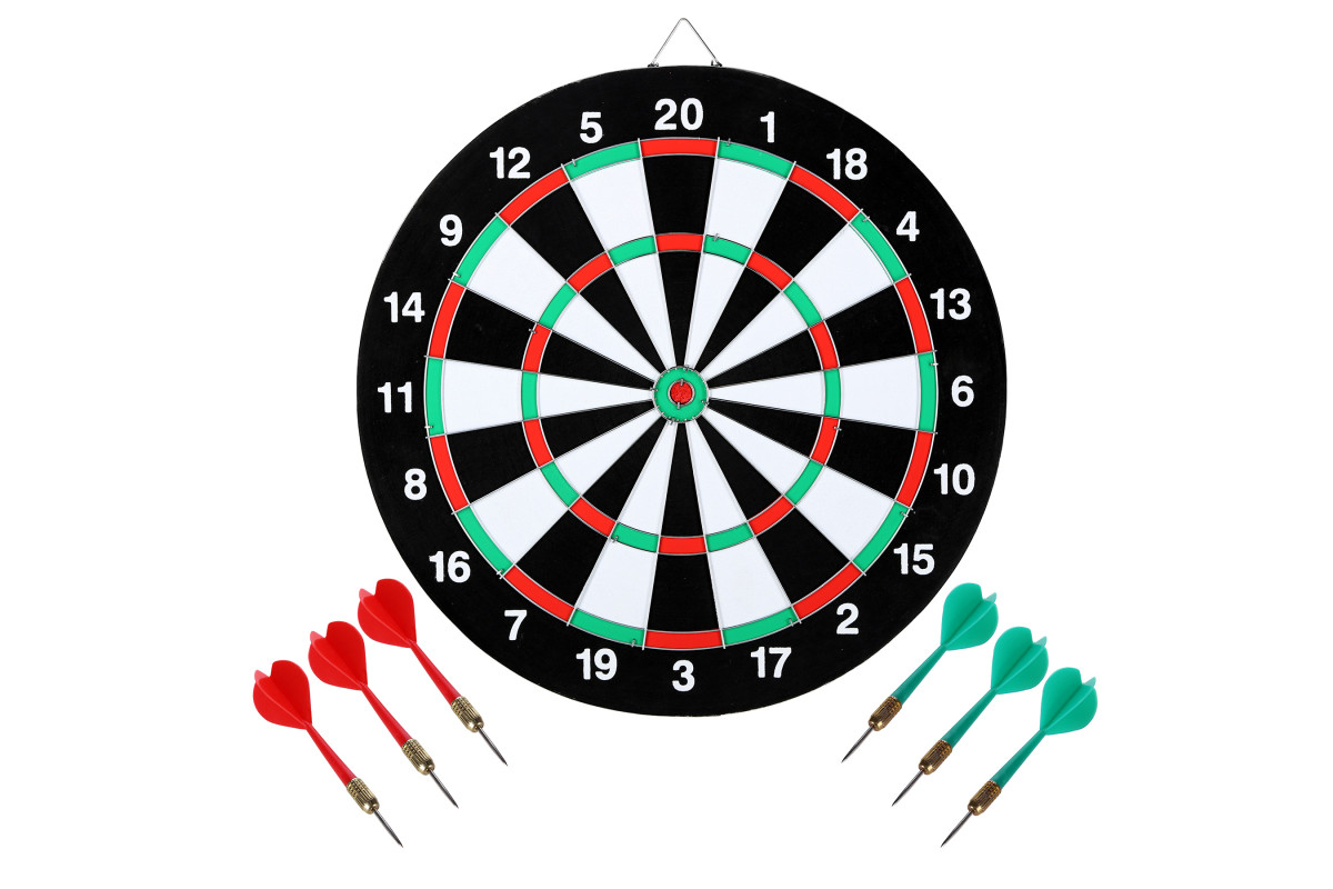 - У комплекті: мішень 2в1, 6 дротиків, гачок для кріплення на стіні, інструкція з експлуатації