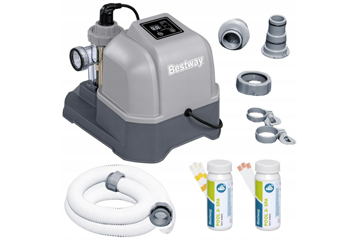 Для отримання натурального хлору достатньо додати кухонну сіль у воду басейну. Коли вона проходить через генератор, утворюється нешкідливий хлор та іони, які знищують водорості й бактерії. Продуктивність пристрою становить до 12 г хлору на годину. Для роботи необхідний фільтруючий насос із продуктивністю не менше 1249 л/год.