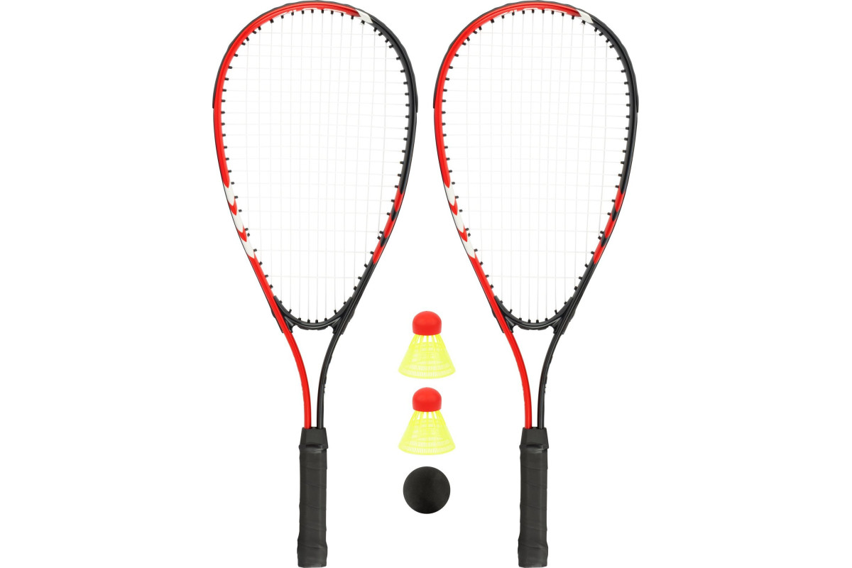 До складу набору входять дві легкі алюмінієві ракетки, які забезпечують чудову маневровість та комфорт під час гри. Міцні нейлонові струни гарантують тривале використання, що робить цей набір ідеальним як для початківців, так і для більш досвідчених гравців.