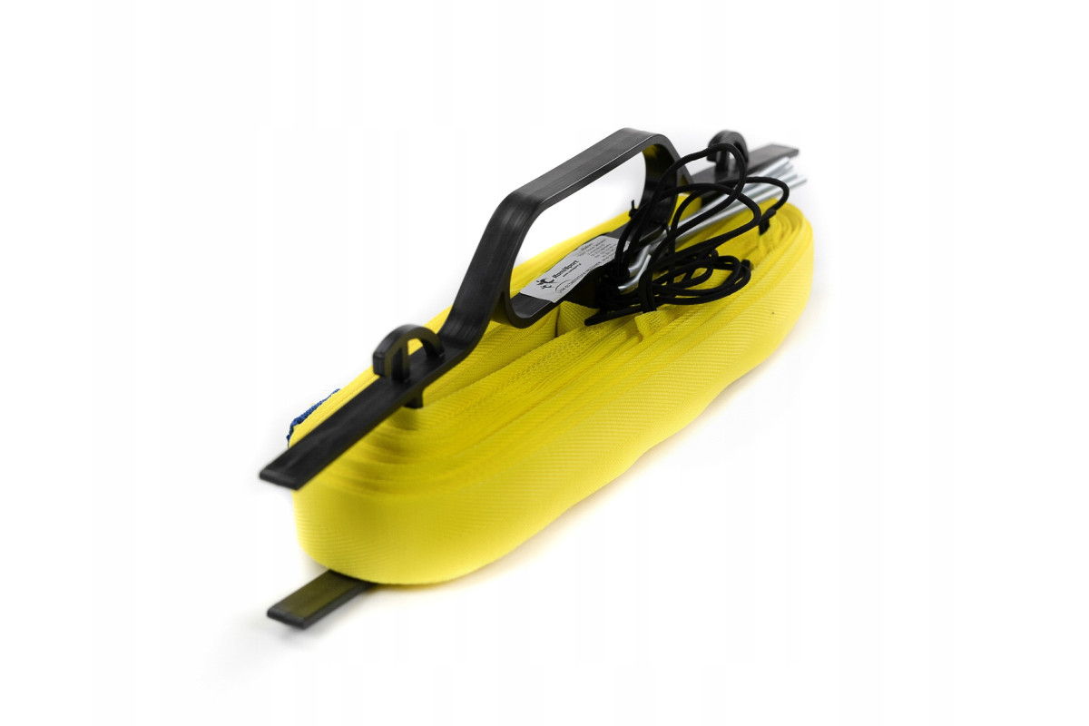 Лінії кріпляться до підлоги за допомогою міцних штифтів товщиною 5 мм і довжиною 20 см, які оцинковані, що запобігає їх іржавінню. Гумові натяжні елементи в кожному куті забезпечують стабільність, завдяки чому лінії залишаються на своєму місці навіть під час інтенсивної гри. Крім того, система намотування полегшує зберігання ліній, що є надзвичайно практичним.