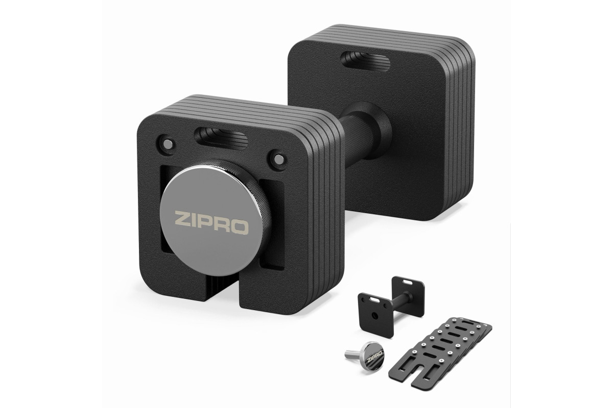 Переважна більшість гантелей на ринку вимагає копіткого відкручування затискного гвинта, а потім зсунення дисків з самої штанги. Це процес, який непотрібно затягується, і який був повністю усунутий у випадку гантелей ZIPRO. Достатньо злегка ослабити затискний гвинт двома-трьома рухами. Потім витягуємо або вставляємо диски – можна з легкістю вийняти навіть ті, що знаходяться всередині. Вся процедура відбувається під час підняття даного навантаження або вставляння нового. Наприкінці достатньо закрутити гвинт і все готово – диски жорстко закріплюються, а весь процес займає не більше 10 секунд.