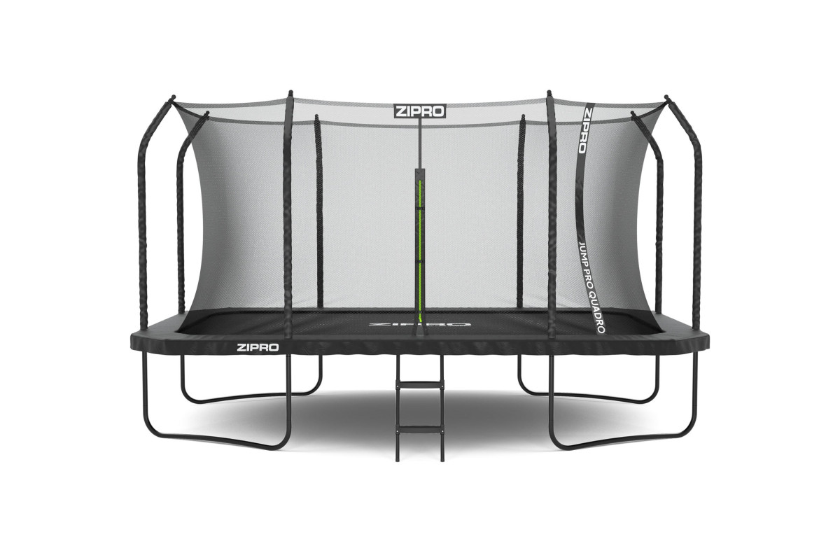 У моделі ZIPRO Quadro пружини та опорні стовпчики розміщені поза сіткою, що дозволяє визначити безпечну зону для стрибків та зменшує ризик випадкового контакту з елементами конструкції.