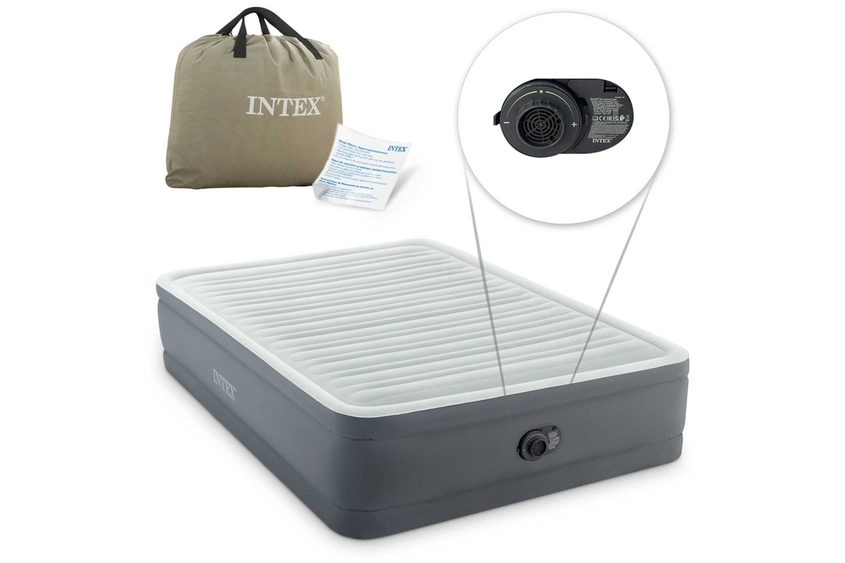 Надувний матрац INTEX 64906ND з вбудованим електричним насосом — це практичне двоспальне ліжко розміром 203 × 152 × 46 см, яке забезпечує комфортний сон вдома, на дачі чи під час подорожей. Завдяки сучасним технологіям Fiber-Tech та Dura-Beam він має міцну внутрішню конструкцію, що гарантує стабільність, довговічність та зручність під час відпочинку. М’яке велюрове покриття робить поверхню приємною на дотик і запобігає ковзанню постільної білизни, а висота 46 см дозволяє легко вставати з матраца.