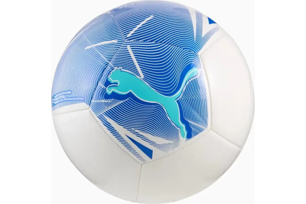 Puma Big Cat ball — це універсальний футбольний м’яч для тренувань і аматорських матчів. Модель виконана у класичному поєднанні білого та синього кольорів із фірмовим логотипом Puma, що робить його добре помітним на полі.