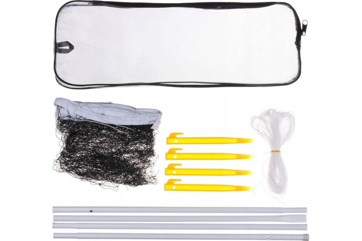 - Елементи комплекту: сітка, штирі для кріплення, мотузка, складні стовпчики