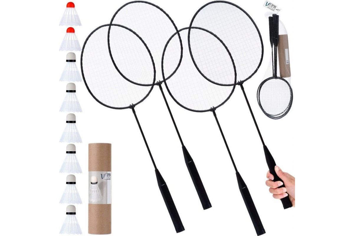 Ракетки виготовлені з міцної сталі, що забезпечує їх довговічність та стійкість до пошкоджень. Волани, виготовлені з пластику, є легкими, а їхня конструкція гарантує стабільність під час польоту. Завдяки цим матеріалам набір Vilde ідеально підходить як для новачків, так і для більш досвідчених гравців.