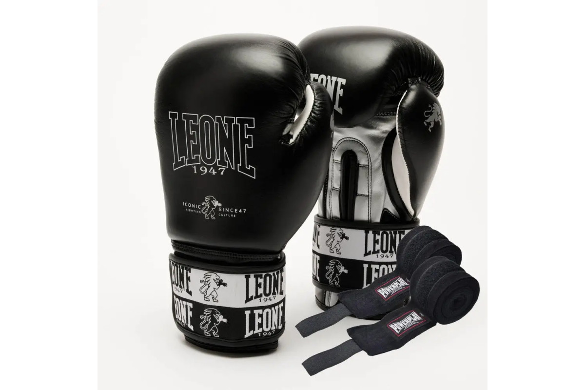 Рукавички боксерські з бинтами Leone GN208 ICONIC розмір 16 унцій, чорні