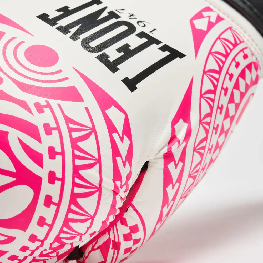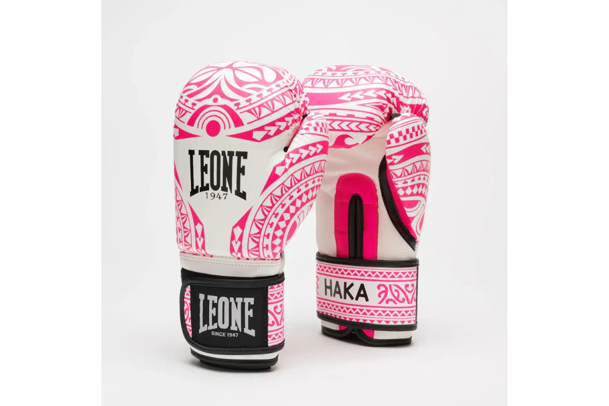 Рукавички боксерські Leone GN329 HAKA розмір 10 унцій, біло-рожеві