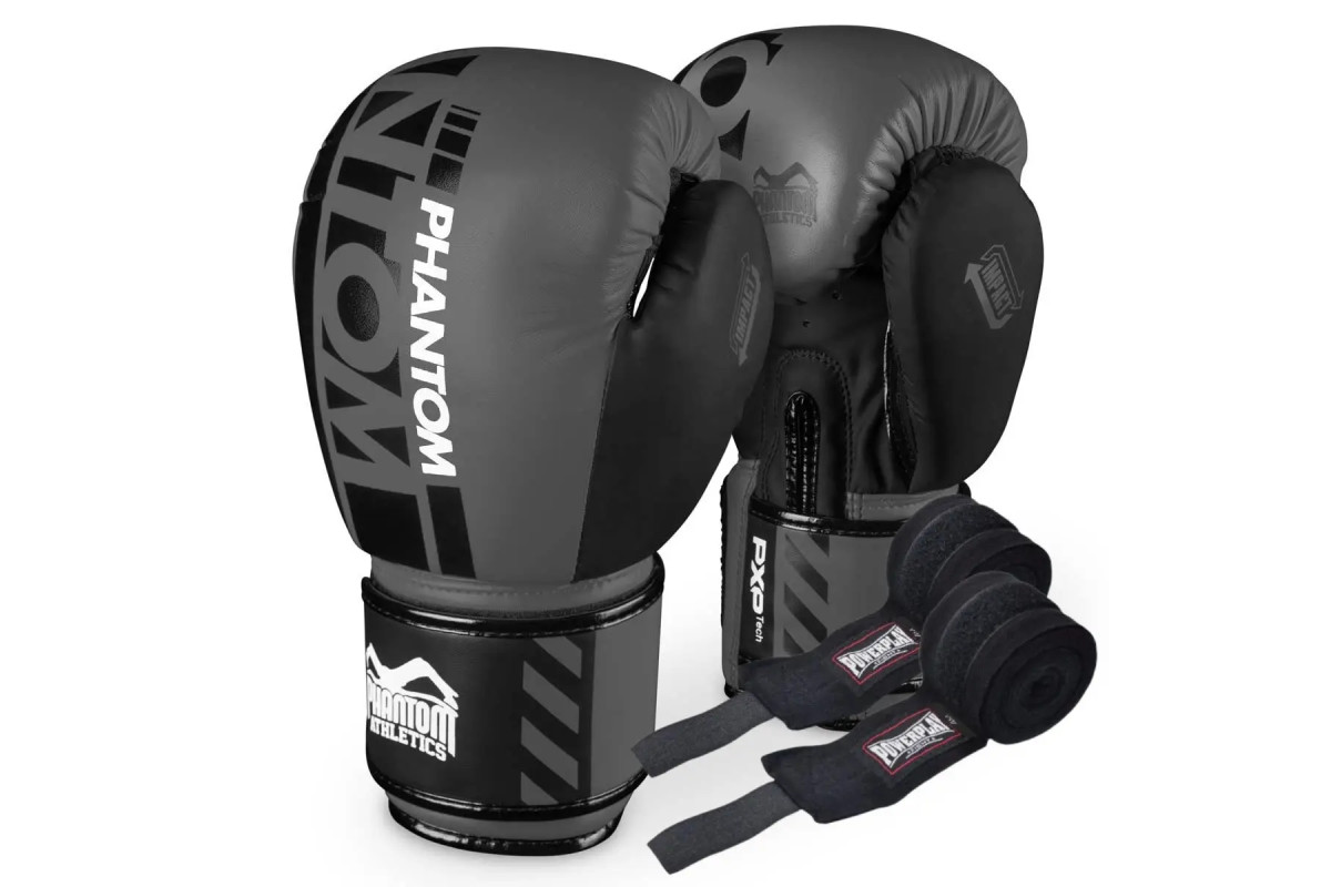 Рукавички боксерські з бинтами Phantom APEX розмір 12 унцій, сірі