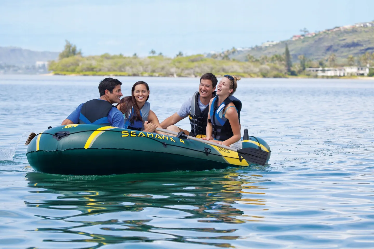 У комплект входять алюмінієві весла та поршневий насос, що робить понтон готовим до використання одразу після покупки. Додатково передбачена сумка для аксесуарів і ремонтна латка. Завдяки продуманій комплектації та сучасним технологіям, Seahawk 4 Set стане надійним супутником для багаторічних пригод на воді.