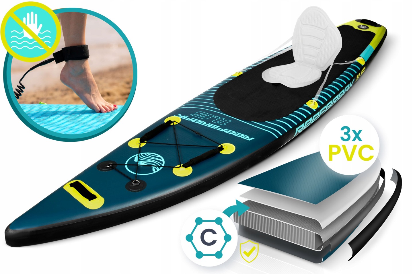 Дошка виготовлена з багатошарового PVC, стійкого до ультрафіолету, та оснащена антиковзним покриттям EVA, яке додає безпеки й комфорту. Завдяки трьом знімним плавникам SUP легко адаптується до різних умов — він добре тримає курс на спокійній воді та залишається маневреним під час активного катання.