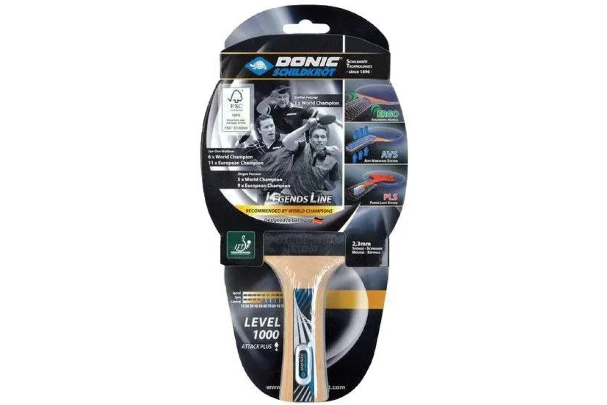 Ракетка для настільного тенісу Donic-Schildkröt Legends 1000 FSC — це топова модель серії Legends, створена для досвідчених гравців і амбіційних аматорів, які віддають перевагу агресивному атакувальному стилю гри.