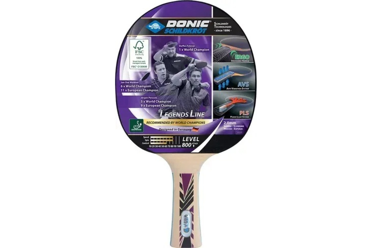 Donic Legends 800 FSC - ракетка для настільного тенісу для впевнених спортсменів. Відмінно підходить як для професійних, так і для аматорських змагань. Дерев'яна основа і якісні матеріали забезпечують відмінний відскік і точність ударів.