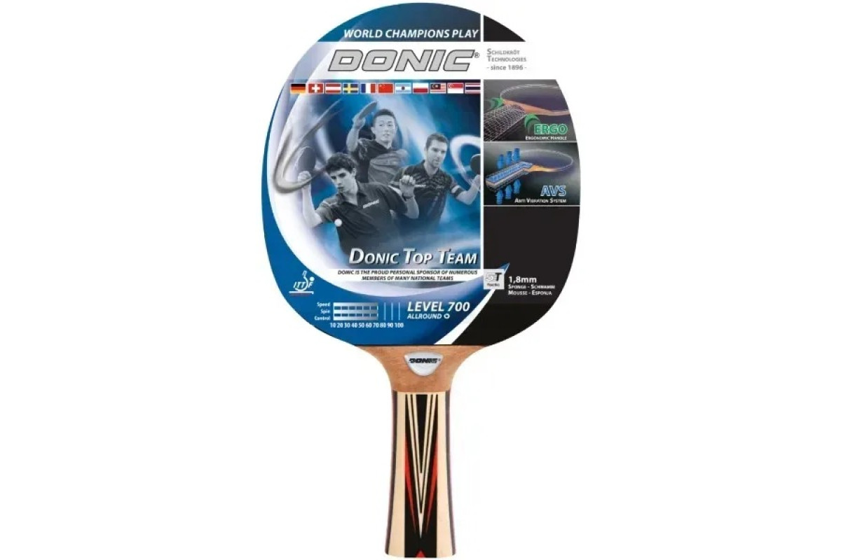 Donic-Schildkröt Top Team 700 — це більш просунута модель у серії Top Team, яка орієнтована на активну гру з елементами атаки. У порівнянні з версією 600, ця ракетка має вищу швидкість і обертання, тому дозволяє виконувати більш потужні та різкі удари.
