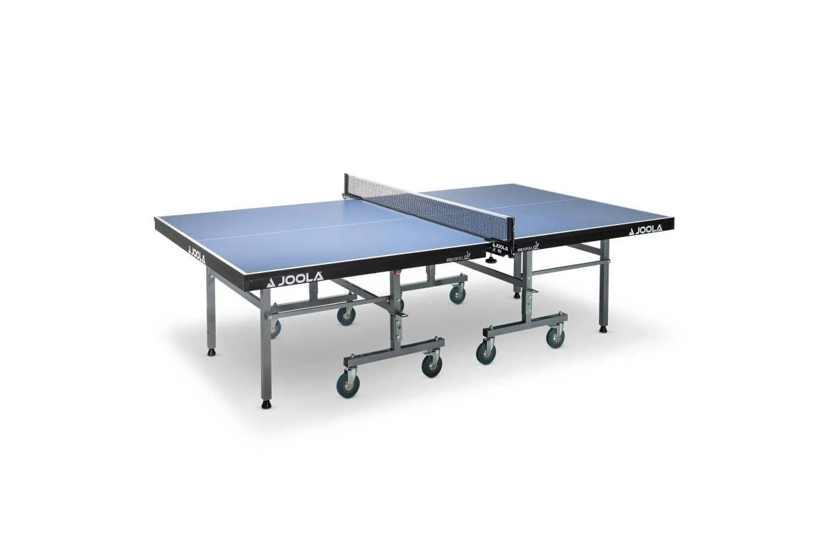 Стіл оснащений колесами для транспортування, завдяки яким його легко можна переміщати по залі або будинку. Завдяки системі складання Joola World Cup не буде займати багато місця в складеному стані, що необхідно для компактного зберігання.