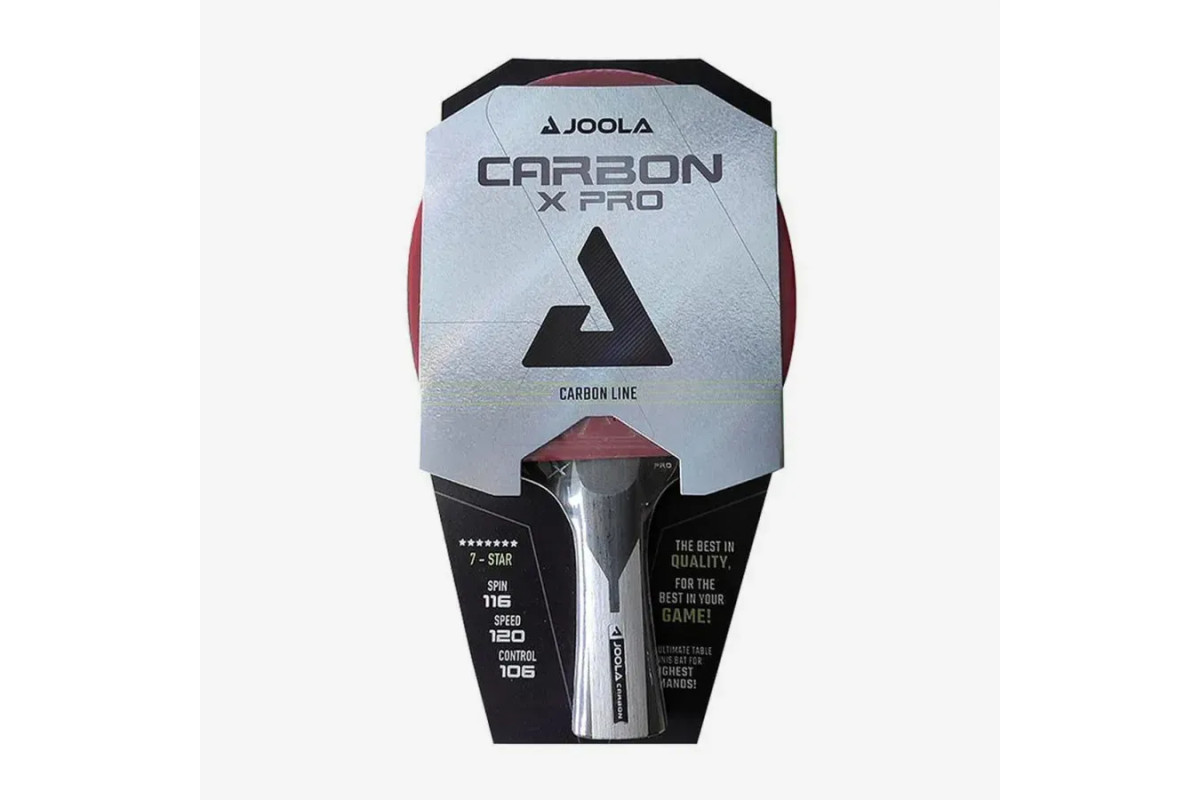 JOOLA Carbon X Pro - відмінна ракетка для настільного тенісу, яка відповідає найвищим вимогам. Карбоновий шар, який використовується в ракетці, забезпечує виняткову динаміку і високу якість ударів по всій поверхні ракетки. Накладки Micron, схвалені ITTF, мають найвищу якість і гарантують максимальне обертання та швидкість. Виведіть свою гру на новий рівень з JOOLA Carbon Pro X.