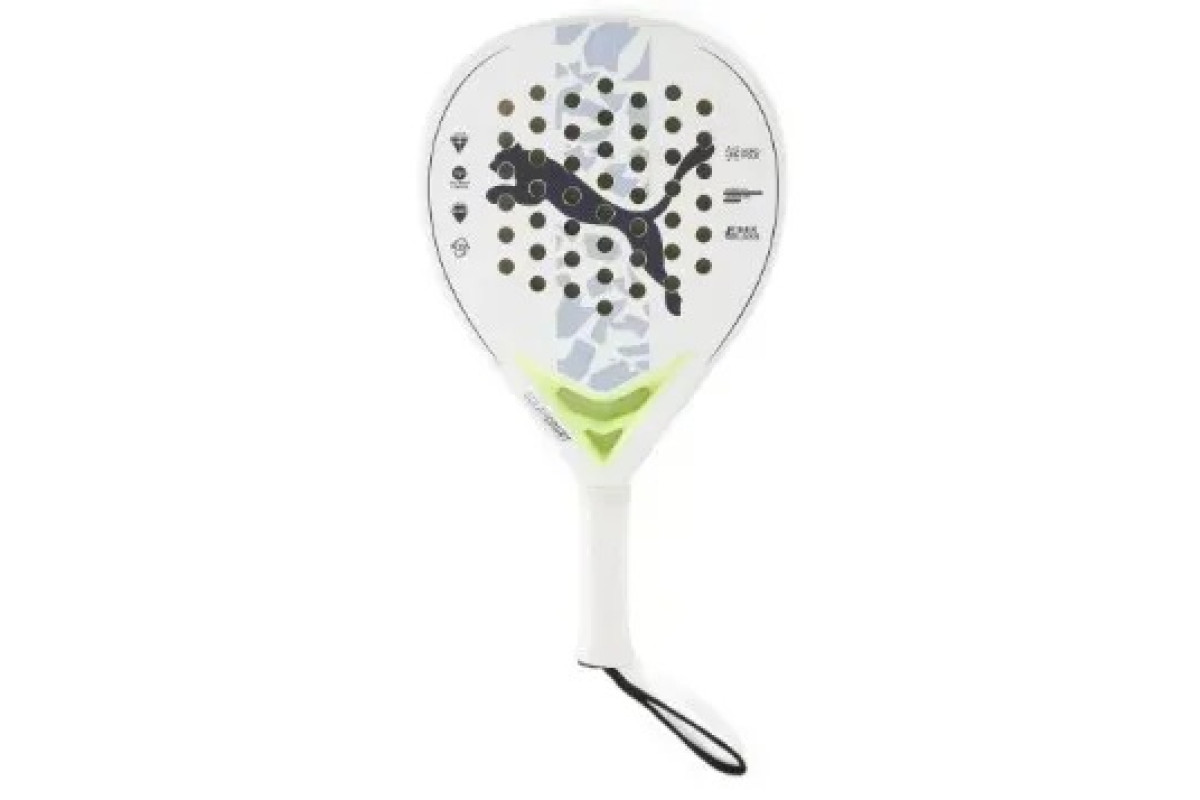 Puma Solar Court — це універсальна падел-ракетка для гравців, які хочуть баланс між контролем і потужністю. Вона має форму “краплі”, що дає достатньо сили для атак, але при цьому зберігає контроль у захисній грі.