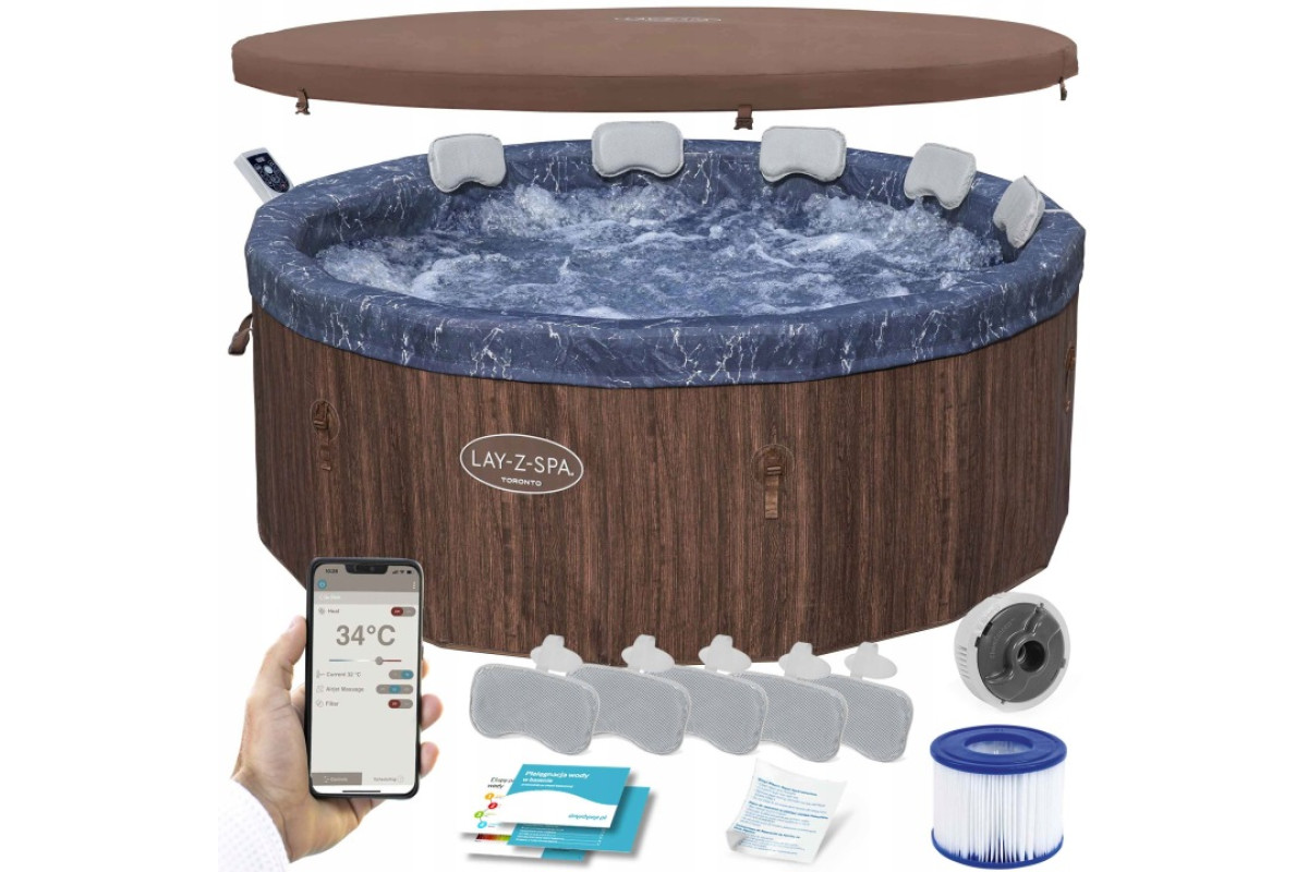 Джакузі‑SPA надувне Bestway Lay‑Z Toronto 6001W 190 × 190 × 70 см – сучасний СПА‑центр на 5–7 осіб, який поєднує комфорт, стиль та інноваційні технології. Тисячі нагрітих бульбашок створюють максимальний комфорт і забезпечують чудовий спосіб розслабитися. Це приватний SPA на багато сезонів, у якому сучасні технології гарантують довговічність, стабільність та безпеку виробу.