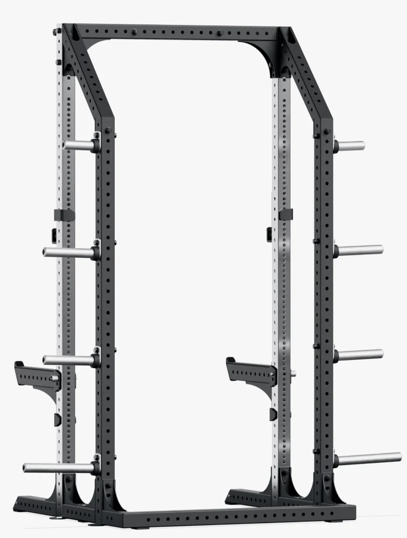 Конструкція оснащена ключовими аксесуарами, які дозволяють одразу розпочати повноцінні силові тренування. У комплект входять турнік для підтягувань, J-гачки для штанги з роликами, страхувальні опори та вісім тримачів для дисків, що забезпечують зручне та компактне зберігання вагових дисків.