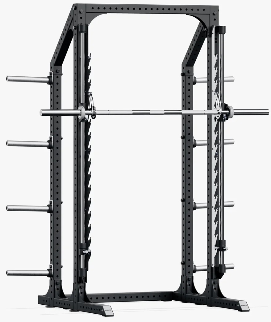 Силова рама Eleiko Prestera з машиною Сміта — це універсальна силова станція, створена для інтенсивних тренувань у професійних спортивних клубах і домашніх тренажерних залах преміумрівня. Конструкція поєднує надійність півстійки та функціональність машини Сміта, що дозволяє виконувати широкий спектр силових вправ з високим рівнем безпеки.