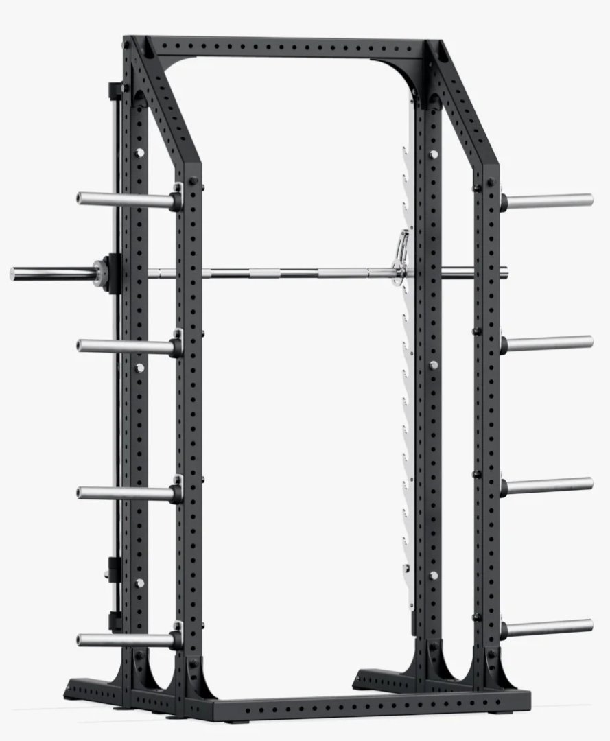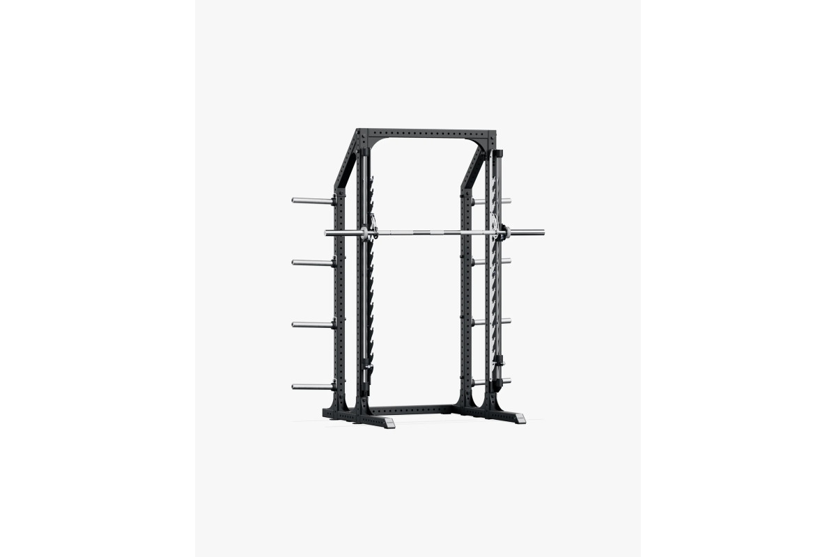 Система включає прямокутну раму з вбудованим грифом вагою 15 кг, який рухається по вертикальних напрямних. Це ідеальне рішення для виконання присідань, випадів, жимів лежачи, жимів під кутом та інших базових силових вправ.