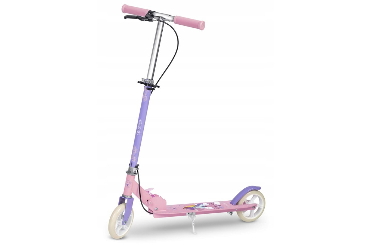 Дитячий самокат Ricokids Kodi Princess — міський самокат створений для дітей віком від 3 до 8 років. Конструкція поєднує легкість та практичність: він складається, що робить його зручним для перенесення та зберігання, а регульоване кермо дозволяє підлаштовувати висоту під зріст. Нижня платформа забезпечує стабільність і робить катання менш виснажливим, а великі колеса з поліуретанової гуми гарантують плавність руху навіть на нерівних поверхнях.