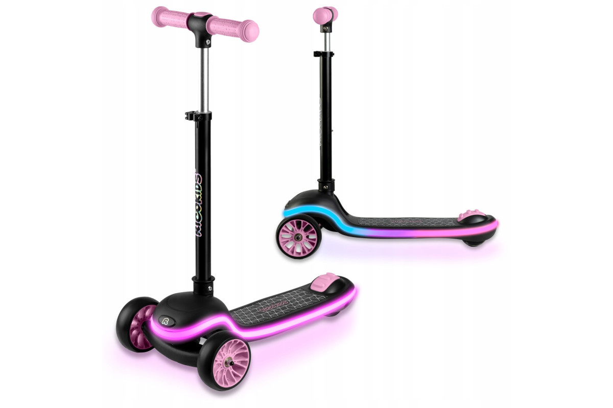 Дитячий самокат триколісний Ricokids Leddi чорно-рожевий