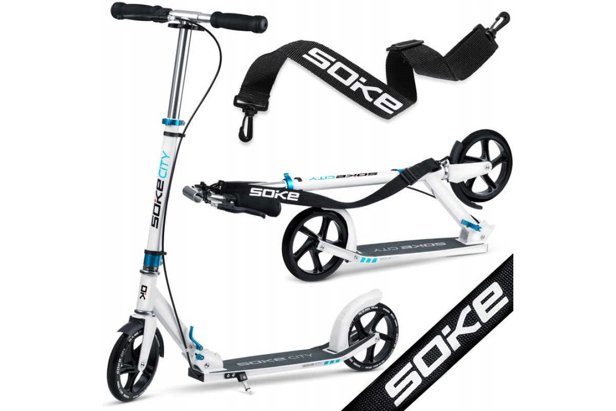 Самокат Soke City 1606 — цей класичний міський самокат створений для щоденного використання у місті. Завдяки великим колесам він чудово справляється з нерівностями дороги, а легка алюмінієва конструкція робить його зручним для транспортування. Модель підходить як для дітей, так і для дорослих, витримуючи навантаження до 100 кг.