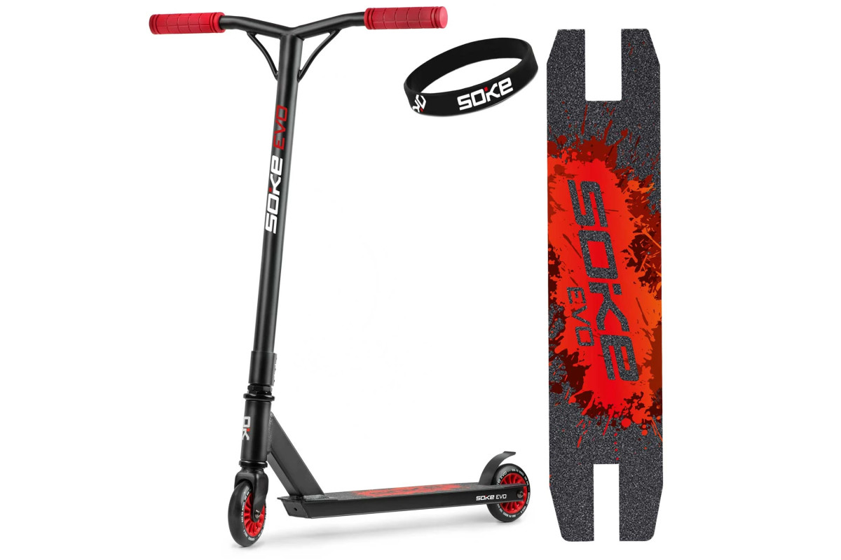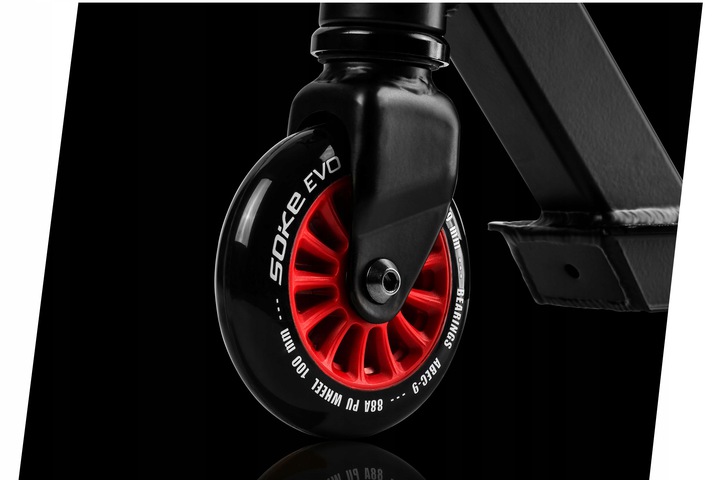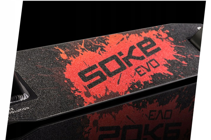 Самокат SOKE EVO Red— це трюковий самокат, який поєднує легкість, міцність та сучасний дизайн. Завдяки вазі лише близько 3,4 кг він маневрений і слухняний, що робить його чудовим вибором для тих, хто хоче впевнено відпрацьовувати трюки у скейтпарку чи на міських вулицях. Одночастинний алюмінієвий дек (48 × 10 см) витримує серйозні навантаження, а залізна вилка та кермова труба додають міцності й контролю. Система компресії HIC забезпечує плавність руху та стабільність, а колеса PU 100 × 24 мм з твердістю 88A гарантують швидкість і точність.