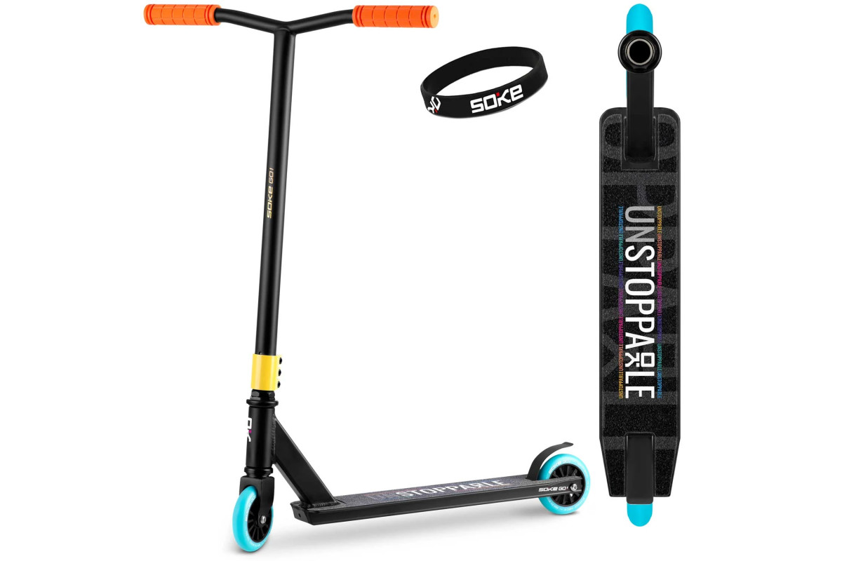 Самокат SOKE GO — легкий і маневрений трюковий самокат, створений для катання у скейтпарку та відпрацювання трюків. Одночастинний алюмінієвий дек (48 × 10 см) з якісними зварними швами витримує серйозні навантаження, а сталева кермова труба забезпечує міцність і контроль. Завдяки вазі лише 2,9 кг він ідеально підходить для швидких розворотів і складних елементів. Система компресії HIC гарантує плавність руху та стабільність, а колеса PU 100 × 24 мм з нейлоновим сердечником забезпечують швидкість і контроль.