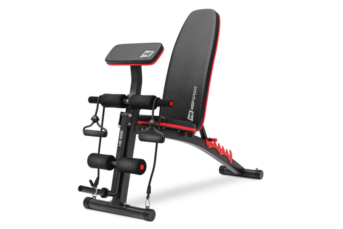 Тренувальна лава HS-1035 від Hop-Sport - це багатофункціональний пристрій, для ефективних тренувань в домашньому спортзалі. Лава HS-1035 оснащена фіксаторами для ніг, а також еспандерами, які можуть бути встановлені по обидва боки основи. Лава дозволяє ефективно тренувати м'язи преса, передпліччя, плечового пояса і ніг. Великою перевагою лави є те, що вона не займає надто багато місця, що в поєднанні з її універсальністю робить її практично ідеальним тренажером.