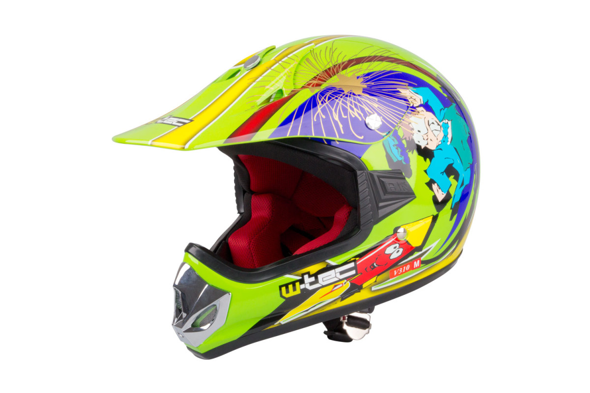 Молодіжний мотоциклетний шолом W-TEC V310 є невід'ємною частиною мотоциклетного спорядження. Сучасний дизайн і привабливий дизайн визначили незмінну популярність цієї моделі. Основними перевагами шолома є його аеродинамічна форма та легкі, міцні матеріали. Надійне кріплення та хромована вентиляція підборіддя гарантують максимальний комфорт використання. Молодіжний мотоциклетний шолом W-TEC V310 доступний у багатьох розмірах і кольорах. Використовуваний матеріал - термопластичний ABS повністю стійкий до механічних пошкоджень, а завдяки спеціальному лаковому покриттю - також захищає від шкідливого впливу УФ-променів. Додатковою перевагою є знімні накладки для щік, які можна мити.